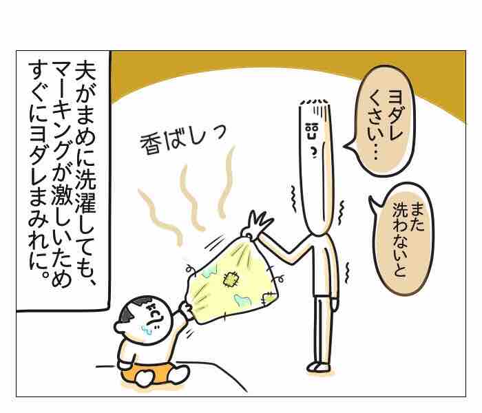 2022年02月08日 息子氏の香ばしい安心毛布 ーーーーーーーーーーーーーーーーーーーーーーーーーーーーーーーーーーーー潔癖症の条件反射というものでしょうか。夫は汚れる危険が及ぶと圧巻のスピード感を発揮するんですよ…(普段はめちゃくちゃマイペースなのに)。それにしてもこの息子氏の安心毛布、確かにヨダレ臭くて汚いのですが、私は思わずクンカクンカしてしまうんですよ…なんかクセになっちゃって…自分から生まれ出たものだからか、なぜか臭いとか汚いという感覚ではないんです。不思議です。ただの親バカです。