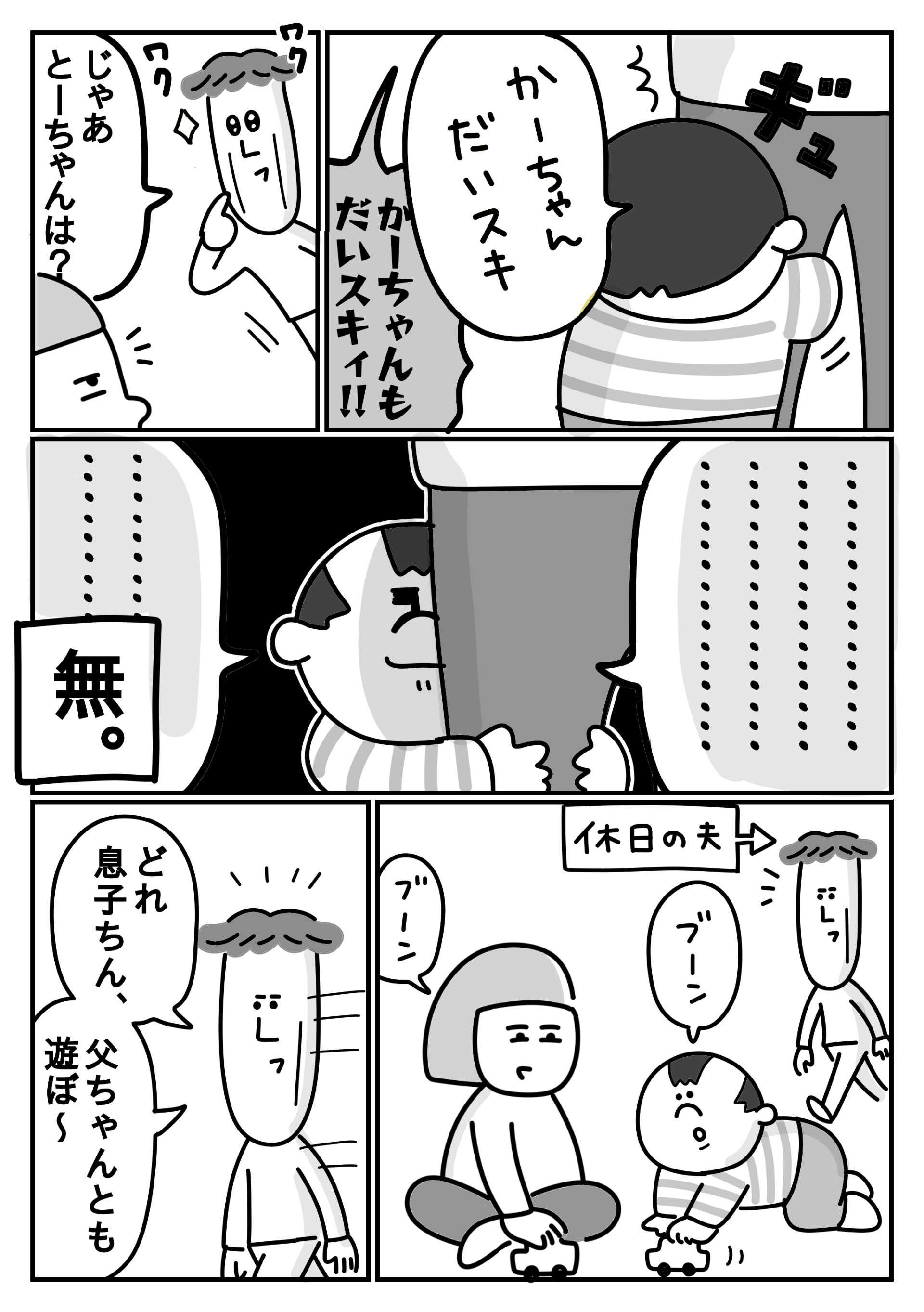 前から夫は定期的に息子の塩対応を受けてますが、最近もだいぶしょっぱくなってきましたw