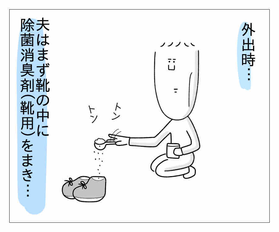 ちなみに、夫の外出時は必ずこの流れで靴を履くので、