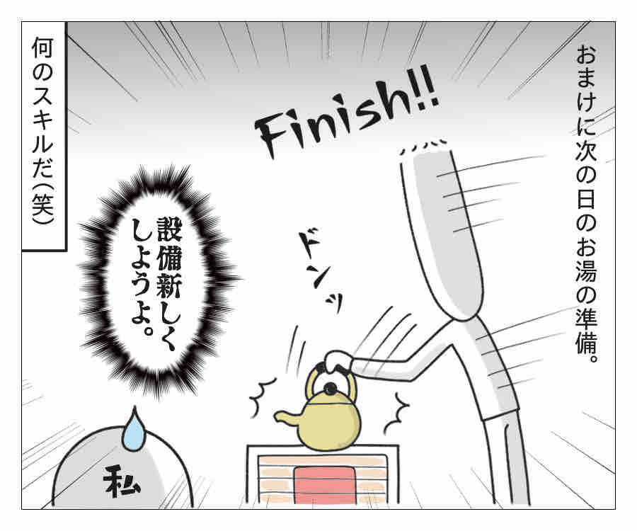 磨きのかかった給湯技を見せてくれたおじさんでしたが、このまま熟練していくと給湯設備は今のおじさんのままになりそうですね…